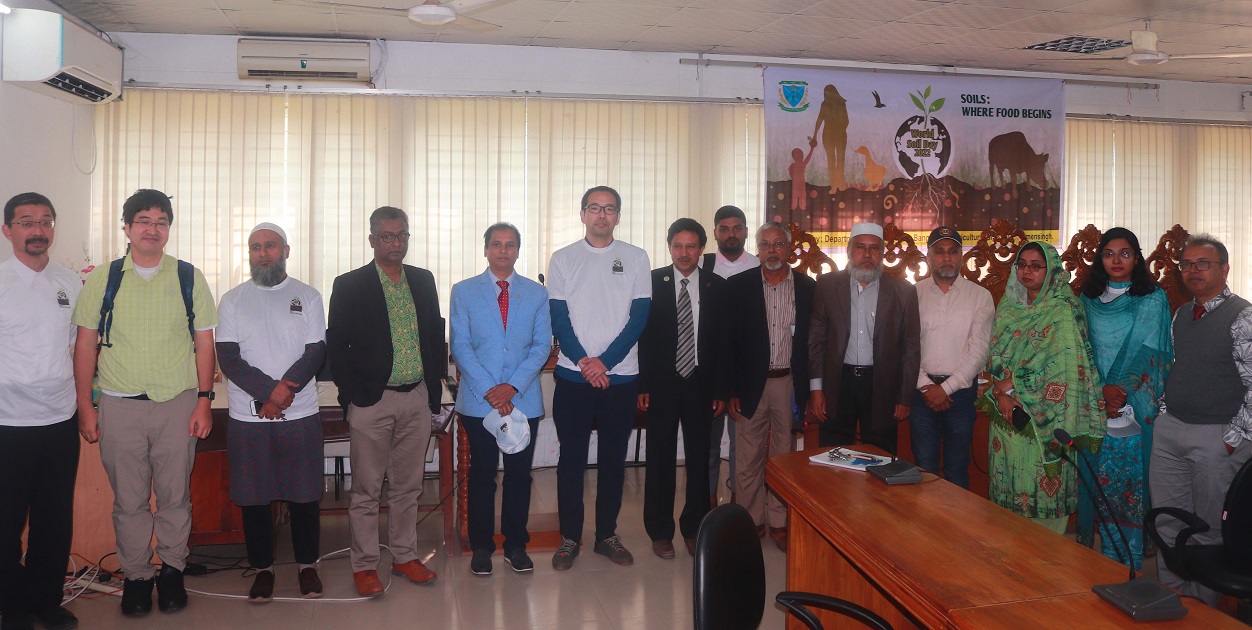 মৃত্তিকা বিজ্ঞান বিভাগের প্রধান অধ্যাপক ড. তাহসিনা শারমিন হকের সভাপতিত্বে ও সহকারী অধ্যাপক মো. হোসেনুজ্জামানের সঞ্চালনায় আলোচনা সভার প্রধান অতিথি হিসেবে ভার্চুয়ালি উপস্থিত ছিলেন বিশ্ববিদ্যালয়ের উপাচার্য অধ্যাপক ড. লুৎফুল হাসান। আলোচনা সভায় মাটির গঠন ও ব্যবহারের উপর একটি প্রামাণ্য চিত্র প্রদর্শন ও মূল প্রবন্ধ উপস্থাপন করেন কর্পোরেট সোশাল রেসপন্সিবিলিটির (সিএসআর) কো-অর্ডিনেটর অধ্যাপক ড. রফিকুল ইসলাম। আলোচনা সভায় সম্মানিত অতিথি হিসেবে উপস্থিত ছিলেন টোকিও বিশ্ববিদ্যালয়ের সহযোগী অধ্যাপক তাকেহিরো ক্যামিয়া। বিশেষ অতিথি হিসেবে উপস্থিত ছিলেন কৃষি অনুষদের ডিন অধ্যাপক ড. মো. আজিজুল হক এবং মৃত্তিকা বিজ্ঞান বিভাগের অবসরপ্রাপ্ত অধ্যাপক ড. মো. মুজিবুর রহমান। সেমিনারে আরও উপস্থিত ছিলেন মৃত্তিকা বিজ্ঞান বিভাগের অধ্যাপক ড. এনামুল হক, অধ্যাপক ড. মো. আবদুল কাদের, অধ্যাপক ড. মো. মাহমুদ হোসেন সুমন, অধ্যাপক ড. মো. মফিজুর রহমান জাহাঙ্গীর, ওই বিভাগের স্নাতকোত্তর ও পিএইচডি শিক্ষার্থীসহ বিভিন্ন প্রতিষ্ঠানে কর্মরত মৃত্তিকা বিজ্ঞানীগণ।
