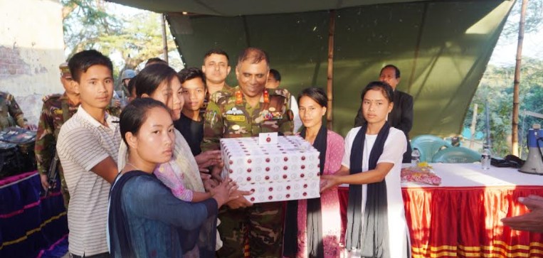 খাগড়াছড়ি রিজিয়নের আওতাধীন দীঘিনালা উপজেলার নয়মাইল এলাকার বেয়ারীং অনাথ আশ্রমের ৩৯ জন ছাত্র/ছাত্রীর মাঝে