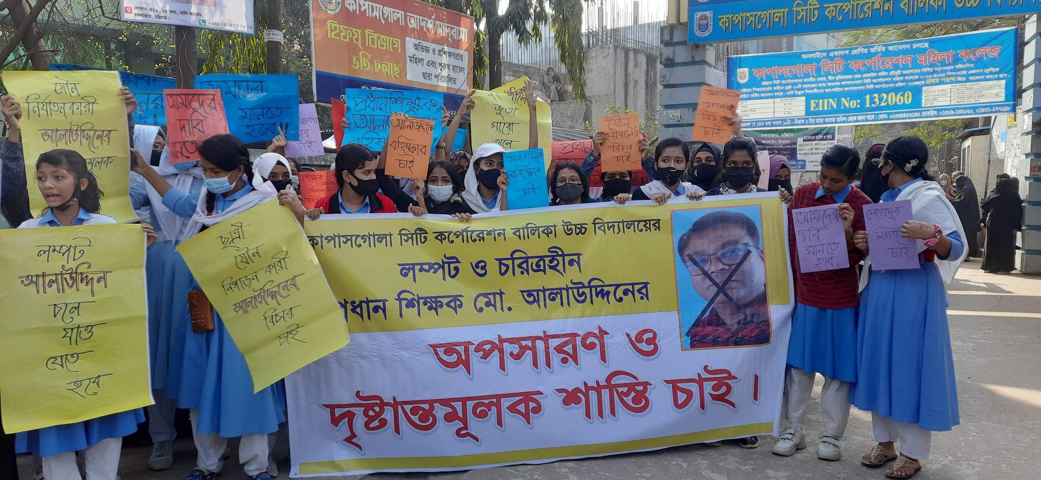 শিক্ষার্থী ও অভিভাবকদের বিদ্যালয়ের মূল ফটকের বাইরে নিয়ে যান। আর সিএনজিচালিত অটোরিকশাযোগে ওই শিক্ষককে বের করে দেওয়া হয়। এ সময় শতাধিক শিক্ষার্থী ওই শিক্ষকের অপসারণ চেয়ে স্লোগান দেয়। এর আগে ৩১শে ডিসেম্বর সিটি করপোরেশনের মেয়র বরাবর ওই শিক্ষকের বিরুদ্ধে লিখিত অভিযোগ দেন অভিভাবকেরা। এতে বলা হয়, প্রধান শিক্ষক মো. আলাউদ্দিন বিভিন্ন সময়ে শিক্ষার্থীদের সঙ্গে অশালীন আচরণ করেছেন। অভিযোগের বিষয়ে প্রধান শিক্ষক মো. আলাউদ্দিন বলেন, ‘যৌন নিপীড়নের কোনো ঘটনার সঙ্গে আমি জড়িত নই। আমাকে প্রধান শিক্ষকের পদ থেকে সরানোর জন্য ষড়যন্ত্র করা হচ্ছে। প্রতিষ্ঠানের কিছু শিক্ষকও এসবের সঙ্গে জড়িত। তাঁরাই শিক্ষার্থীদের উসকে দিচ্ছেন। ফলে মেয়র মহোদয়ের সঙ্গে কথা বলে পরবর্তী সিদ্ধান্ত নেব।’ জানতে চাইলে ১৬ নম্বর চকবাজার ওয়ার্ডের কাউন্সিলর নুর মোস্তফা বিজনেস বাংলাদেশ কে বলেন, সিটি করপোরেশন কর্তৃপক্ষের সঙ্গে আলোচনা হয়েছে। প্রধান শিক্ষককে সরিয়ে দেওয়ার সিদ্ধান্ত হয়েছে।