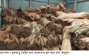 পুরুষ শ্রমিকরা উলুফুল ও পাটখড়ির সাথে গুনা দিয়ে বেধে সুন্দর মোঠা (আটি) তৈরি করে। পরে ওই বাধাই করা মোঠা গুলোতে কস্টেপ অথবা পিভিসি পাইপ লাগিয়ে নারী শ্রমিকরা বাজারজাত করার উপযোগী করে তোলে। এসব কারখানা গুলো মুলত কালিহাতী উপজেলার মগড়া বাজার, পটল বাজার, দূর্গাপুর, কদিমহামজানী, বঙ্গবন্ধু সেতুর পূর্ব পাড়, শ্যামশৈল, কুর্ষাবেনু ও পাথরঘাট এলাকায় গড়ে ওঠেছে। পটল বাজারের ফুল ঝাড়– ব্যবসায়ি নজরুল ইসলাম নুরু জানান একসময় এব্যবসার সুদিন থাকলেও এখন ব্যবসায় কোন শান্তি নেই। পার্বত্য চট্টগ্রাম, খাগড়াছড়ি, বান্দরবন ও রাঙ্গামাটি এলাকা থেকে এসব উলুফুল খুবই কম দামে কিনে আনেন। কিন্তু মহাসড়কে পুলিশ ও বনবিভাগের নানা তালবাহানার ফলে ওই ফুলের দাম বিশ গুণেরও বেশি পড়ে যায়। অপরদিকে তেলের মূল্য বৃদ্ধির কারণে পরিবহন খরচও বেড়েছে।