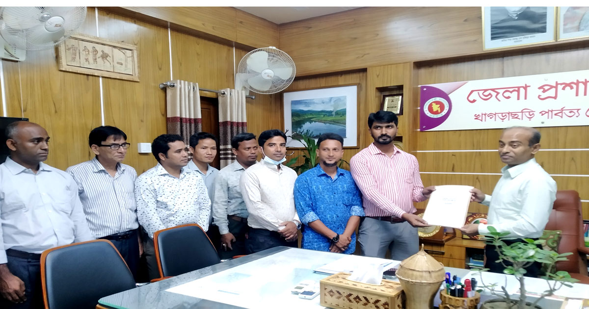 কেন্দ্রীয় কর্মসূচির অংশ হিসাবে সারা দেশের ন্যায় জনবল কাঠামো ও নিয়োগবিধি বাস্তবায়নসহ পাঁচ দফা দাবিতে সোমবার ১২সেপ্টেম্বর থেকে ১৫ সেপ্টেম্বর বৃহস্পতিবার চার দিনব্যাপী অর্ধদিবস কর্মবিরতি শেষে ৫দফা দাবিতে খাগড়াছড়ি জেলা প্রশাসক প্রতাপ চন্দ্র বিশ্বাস এর মাধ্যমে প্রধানমন্ত্রী বরাবর স্মারকলিপি প্রদান করেছেন উপজেলা প্রকল্প বাস্তবায়ন অফিসার সমিতি ও দূর্যোগ ব্যবস্থাপনা অধিদপ্তরাধীন কর্মচারী কল্যাণ সমিতির নেতৃবৃন্দরা।