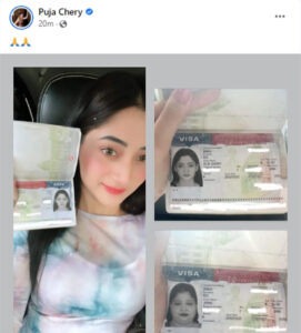 আজ পূজা তার ভেরিফায়েড ফেসবুক পেজে ভিসা পাওয়ার বিষয়টি জানিয়ে একটি ছবি পোস্ট করেন। তাতে দেখা যায়, পূজা ও তার মা ঝর্ণা রায়ের যুক্তরাষ্ট্রের ভিসাযুক্ত পাসপোর্ট। এই পোস্টে পূজা লেখেন, ‘অবশেষে আমরা এটা পেয়েছি।’ এর কিছুক্ষণ পরই পোস্টটি পূজা তার ফেসবুক থেকে সরিয়ে ফেলেন।