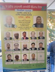 মার্কিন যুক্তরাষ্ট্রে অবস্থিত বৃহত্তর নোয়াখালী বাসীদের সংগঠন বৃহত্তর নোয়াখালী সোসাইটি (ইউএসএ)এর নির্বাচন (২০২২-২০২৪) গত ৩০ অক্টোবর রবিবার সম্পন্ন হয়েছে,উক্ত নির্বাচনে বিনা প্রতিদ্বন্দ্বিতায় সভাপতি এবং সাধারণ সম্পাদক পদে নির্বাচিত হয়েছেন ‘মানিক-জসিম’ প্যানেলের যথাক্রমে নাজমুল হাসান মানিক ও ইউসুফ জসিম।