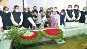 ধানমন্ডির আনুষ্ঠানিকতা শেষে ১৫ আগস্টের শহীদ ও কারাগারে নির্মমভাবে নিহত জাতীয় নেতাদের সমাধিতে পুষ্পার্ঘ অর্পণ করতে বনানী কবরস্থানের উদ্দেশে রওনা দেন প্রধানমন্ত্রী।