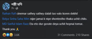 পরীমণি সেই পোস্টে শুরুতেই রায়হান রাফিকে ট্যাগ করে লেখেন, ‘সিনেমার সঙ্গে সঙ্গে দালালিটাও ভালো করেন দেখি! এরপর মিমকে ট্যাগ করে পরীমণি লেখেন, ‘নিজের জামাইকে নিয়ে সন্তুষ্ট থাকা উচিত ছিল।’