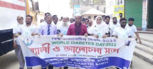 শেষে ডায়াবেটিক হাসপাতাল চত্বর থেকে একটি বর্ণাঢ্য শোভাযাত্রা বের করে পৌর বাজারের প্রধান প্রধান সড়ক প্রদক্ষিণ করে আবারও ডায়াবেটিক হাসপাতালে এসে শেষ হয়।