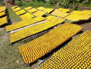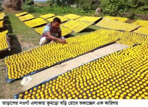 শুক্রবার সকালে সরেজমিনে তাড়াশ উপজেলার নওগাঁ গ্রামে গিয়ে দেখা যায় ১০ থেকে ১২ টি পরিবার কুমরো বড়ি তৈরি করে রোদে শুকাচ্ছে । আর এ বড়িগুলো রোদে শুকানো হলেই বিক্রি করা হবে বিভিন্ন হাট-বাজারে। এমনকি এ বড়ি তৈরির চাতাল বা খোলা থেকেও সরাসরি পাইকারগণ ক্রয় করে নিয়ে যান।
