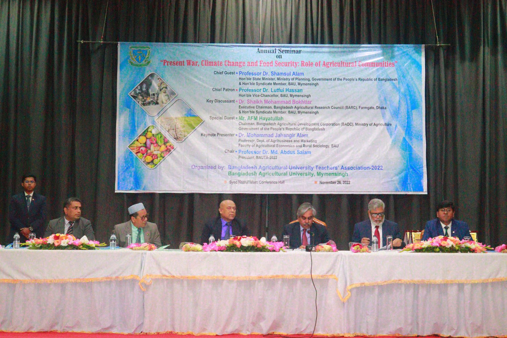 বাকৃবি শিক্ষক সমিতির সভাপতি অধ্যাপক ড. আব্দুস সালামের সভাপতিত্বে এবং সাধারণ সম্পাদক অধ্যাপক ড. গোলাম ফারুকের সঞ্চালনায় আলোচনা সভায় প্রধান অতিথি হিসেবে ভার্চুয়ালি উপস্থিত ছিলেন পরিকল্পনা প্রতিমন্ত্রী অধ্যাপক ড. শামসুল আলম। প্রধান পৃষ্ঠপোষক হিসেবে উপস্থিত ছিলেন বাকৃবি উপাচার্য অধ্যাপক ড. লুৎফুল হাসান। মূল আলোচক হিসেবে উপস্থিত ছিলেন বাংলাদেশ কৃষি গবেষণা কাউন্সিলের চেয়ারম্যান ড. শেখ মোহাম্মদ বখতিয়ার। বিশেষ অতিথি হিসেবে বাংলাদেশ কৃষি উন্নয়ন কর্পোরেশনের চেয়ারম্যান এএফএম হায়াতুল্লাহসহ বিশ্ববিদ্যালয়ের বিভিন্ন অনুষদের শিক্ষক-শিক্ষার্থীরা উপস্থিত ছিলেন।