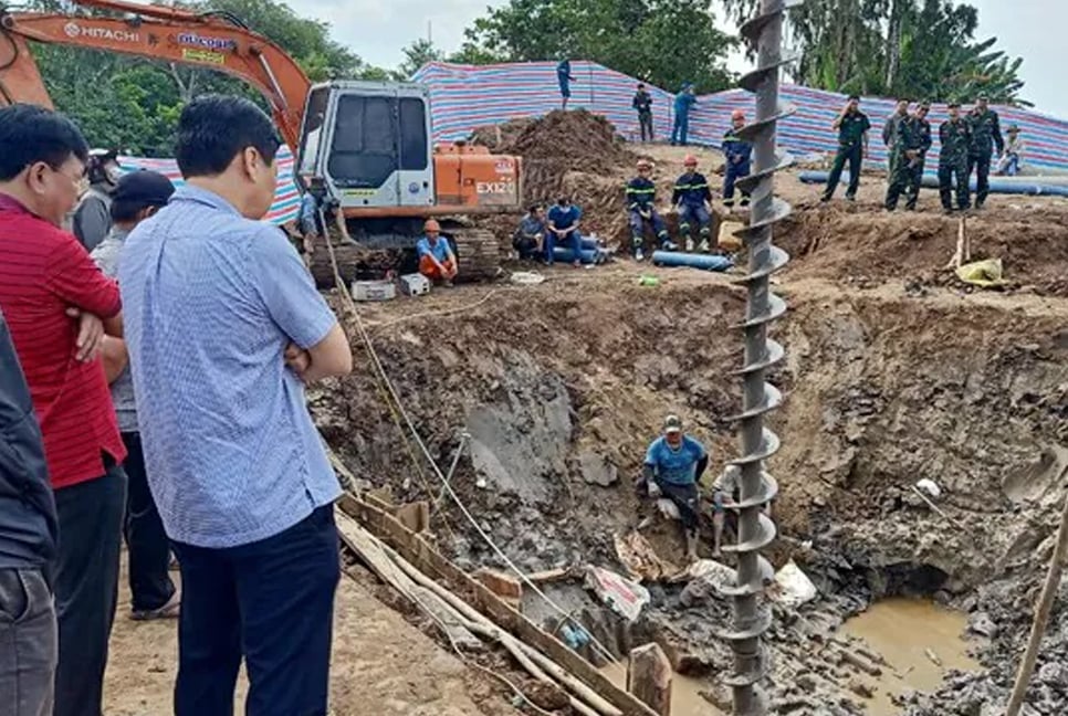 ভিয়েতনামে ৩৫ মিটার গভীর একটি গর্তে পড়ে যাওয়া ১০ বছর বয়সী এক শিশুকে উদ্ধারে কাজ চলছে। রবিবার এক নির্মাধীন এলাকার গর্তে পড়ে যায় শিশুটি।