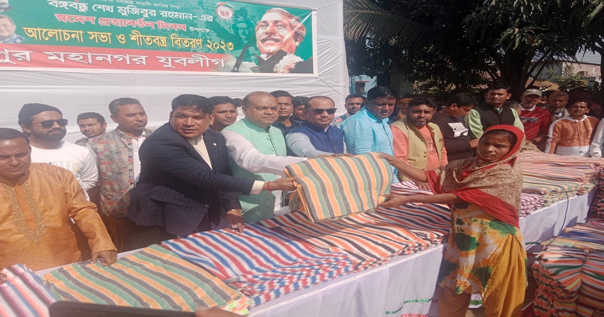 গাজীপুর মহানগর যুবলীগ কর্তৃক যথাযোগ্য মর্যাদায় জাতির জনক বঙ্গবন্ধুর স্বদেশ প্রত্যাবর্তন দিবস পালিত হয়েছে। ১০ জানুয়ারী সোমবার সকালে জাতির জনক বঙ্গবন্ধুর স্বদেশ প্রত্যাবর্তন দিবস উপলক্ষে গাজীপুর সিটি করপোরেশনের ৩৩ নম্বর ওয়ার্ডের উত্তর খাইলকুর জামিয়া রশিদিয়া মাদ্রাসার মাঠ প্রাঙ্গণে আলোচনা সভা দোয়া মাহফিল ও দুস্থ মানুষের মাঝে কম্বল বিতরনের আয়োজন করা হয়। গাজীপুর মহানগর যুবলীগের আহবায়ক কামরুল আহসান সরকার রাসেল এর সভাপতিত্বে আলোচনা সভা ও কম্বল বিতরণ অনুষ্ঠানে বক্তব্য রাখেন মহানগর যুবলীগ নেতা দেলোয়ার হোসেন দেলু, ওয়ার্ড আওয়ামীলীগের সদস্য সচিব আব্দুর রশিদ, যুবলীগ নেতা সুমন আহমেদ শান্ত বাবু, এস এম আলমগীর হোসেন ,আমিন উদ্দিন সরকার,তৌহিদুল ইসলাম দিপ প্রমুখ।অনুষ্ঠানের সঞ্চালনা করেন আবুল কালাম আজাদ মালম। যুবলীগ নেতা কামরুল হাসান সরকার রাসেল জাতির জনক বঙ্গবন্ধুর পাকিস্তান কারাগারের ২৯০ দিনের দুঃখ-কষ্ট-বেদনার মর্মান্তিক ঘটনা গুলো তুলে ধরেন। মাননীয় প্রধানমন্ত্রী শেখ হাসিনার নেতৃত্বে করোনা মহামারী, রাশিয়া-ইউক্রেন যুদ্ধ, আন্তর্জাতিকভাবে দ্রব্যমূল্যের ঊর্ধ্বগতি মোকাবেলা করে দেশ চালানোয় দৃষ্টান্ত স্থাপন করেছেন তা তুলে ধরেন। পরিশেষে বঙ্গবন্ধু শেখ মুজিবুর রহমানের আত্মার শান্তি কামনায় দোয়া মাহফিল করে পাঁচ শতাধিক অসহায় দুস্থ পরিবারের মাঝে কম্বল বিতরণ করেন।