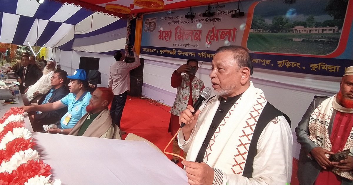 কুমিল্লার বুড়িচং উপজেলার বাকশীমূল ইউনিয়ন এর আজ্ঞাপুর গ্রামের মোর্শেদা বেগম বহুমুখী উচ্চ বিদ্যালয়ের ৫০ বছর পূর্তিতে সুবর্ণ জয়ন্তী উদযাপন পরিষদের উদ্যোগে শনিবার সকাল থেকে মহা মিলন মেলা ও সাংস্কৃতিক অনুষ্ঠান অনুষ্ঠিত হয়েছে । সারাদিন মোর্শেদিয়ানদের ( সকল শিক্ষার্থীদের) স্মৃতি চারণ মূলক বক্তব্য ছিল। আরও ছিল সকল বন্ধুদের মহা মিলন মেলা, ছিল বিদ্যালয় মাঠে বিভিন্ন স্টল মুখ রচক খাবার, নাসারী ফুল ফলের নানা রকম চারা গাছ।আয়োজিত মহা মিলন মেলায় প্রধান অতিথি হিসেবে বক্তব্য রাখেন কুমিল্লা -৫ আসনের সাংসদ বীর মুক্তিযোদ্ধা অ্যাডভোকেট আবুল হাসেম খান।