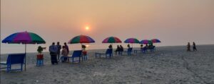 সরেজমিনে গিয়ে দেখা যায়, এই রেস্টুরেন্টের সামনে দিয়ে সারিবদ্ধভাবে দেয়া হয়েছে রঙ বেরঙের পাতকা। প্রতিটি পতাকার নিচে সী বিচের আদৌলে বসানো হয়েছে কাঠের তৈরি কিটকট (চেয়ার)। এতে করে প্রতিদিন বিকেলেই দর্শনার্থীরা ছুটে আসছে এই কালিতলা পদ্মাপাড়ে। তবে সপ্তাহের অন্যান্য দিনের চেয়ে শুক্র এবং শনিবারে সবচেয়ে বেশি ভিড় জমে স্থানটিতে। বিকেল হতে না হতেই মোটরসাইকেল, ইজিবাইক, প্রাইভেটকারসহ বিভিন্ন যানবাহনে এখানে দূরদূরান্ত থেকে দর্শনার্থীদের আগমন ঘটে। দর্শনার্থীদর পদাচারণায় প্রত্যন্ত গ্রামাঞ্চলের এই পদ্মা বিচ যেন রূপ নিয়েছে অনেকটাই কক্সবাজার কিংবা কুয়াকাটা সমুদ্র সৈকতের মতোই।