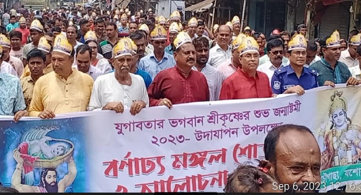 যশোরের চৌগাছায় যুগাবতার ভগবান শ্রীকৃষ্ণের জন্মাষ্টমী উপলক্ষ্যে বর্ণাঢ্য মঙ্গল শোভাযাত্রা ও আলোচনা সভা অনুষ্ঠিত হয়েছে। বুধবার (৬ সেপ্টেম্বর) দুপুরে উপজেলা পূজা উদযাপন পরিষদের আয়োজনে এ শোভাযাত্রা ও আলোচনা সভা অনুষ্ঠিত হয়।
