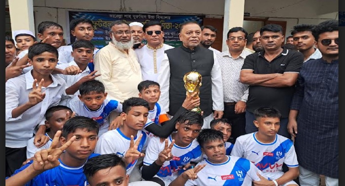 কুমিল্লার বুড়িচং উপজেলার ভারেল্লা শাহ নুরুদ্দীন উচ্চ বিদ্যালয়ে বঙ্গবন্ধু আন্ত: ফুটবল টুর্নামেন্ট ২০২৩ অনুষ্ঠিত হয়।উক্ত খেলা বৃহস্পতিবার বিকালে ৪ টায় বিদ্যালয় মাঠে শুরু হয়।এতে অষ্টম শ্রেণী ২-০ গোলে পরাজিত করে দশম শ্রেণীকে।খেলায় প্রধান অতিথি হিসেবে উপস্থিত ছিলেন কুমিল্লা ৫ (বুড়িচং-ব্রাক্ষণপাড়া) আসনের সংসদ সদস্য বীর মুক্তিযোদ্ধা এড আবুল হাসেম খান, বিশেষ অতিথি বুড়িচং উপজেলা চেয়ারম্যান আখলাক হায়দার,ভারেল্লা উত্তর ইউনিয়ন পরিষদের সাবেক চেয়ারম্যান মোঃ আবদুর রহমান রব, উপজেলা মাধ্যমিক শিক্ষা কর্মকর্তা আব্দুল মান্নান।সহকারী শিক্ষক বশির আহম্মেদের পরিচালনায় সুজাত আলী মাস্টারের সভাপতিত্বে খেলা উদ্ভোদন করেন সহকারী প্রধান শিক্ষক মোঃ হাবিবুর রহমান। এছাড়াও উপস্থিত ছিলেন ভারেল্লা দঃ ইউনিয়ন পরিষদের সাবেক চেয়ারম্যান শাহ কামাল,ভারেল্লা দঃ ইউনিয়ন আ.লীগের সাধারণ সম্পাদক মোঃ নাসির উদ্দিন ভুইয়া,ভারেল্লা দঃ ইউনিয়নের সাবেক ছাত্রলীগের সাধারণ সম্পাদক ফররুখ আহম্মেদ,ভারেল্লা উঃ ইউপি সদস্য যুবলীগ নেতা মোর্শেদ মেম্বার,ভারেল্লা দঃ ছাত্রলীগের সাধারণ সম্পাদক ফরহাদ হোসেন,ছাত্রলীগ নেতা শাকিল সহ বিদ্যালয়ের সকল শিক্ষার্থী,শিক্ষক ,অভিভাবক ও এলাকাবাসী।উপস্হিত সকলের উদ্দেশ্যে এমপি হাসেম খান বলেন যেকোনো শিক্ষার্থী ক্রীড়াঙ্গনের সাথে সম্পৃক্ত থাকলে মাদক থেকে দূরীকরণ, শরীর চর্চার পাশাপাশি মেধা বিকাশিত হয়।তাই সকল শিক্ষার্থী রুটিন অনুযায়ী কমপক্ষে ১ঘন্টা খেলাধূলা করা উচিত।পরিশেষে অতিথিবৃন্দের কাছ থেকে জয়ী ও পরাজয়ী উভয় টিম ট্রপি পুরষ্কার গ্রহণ করেন।