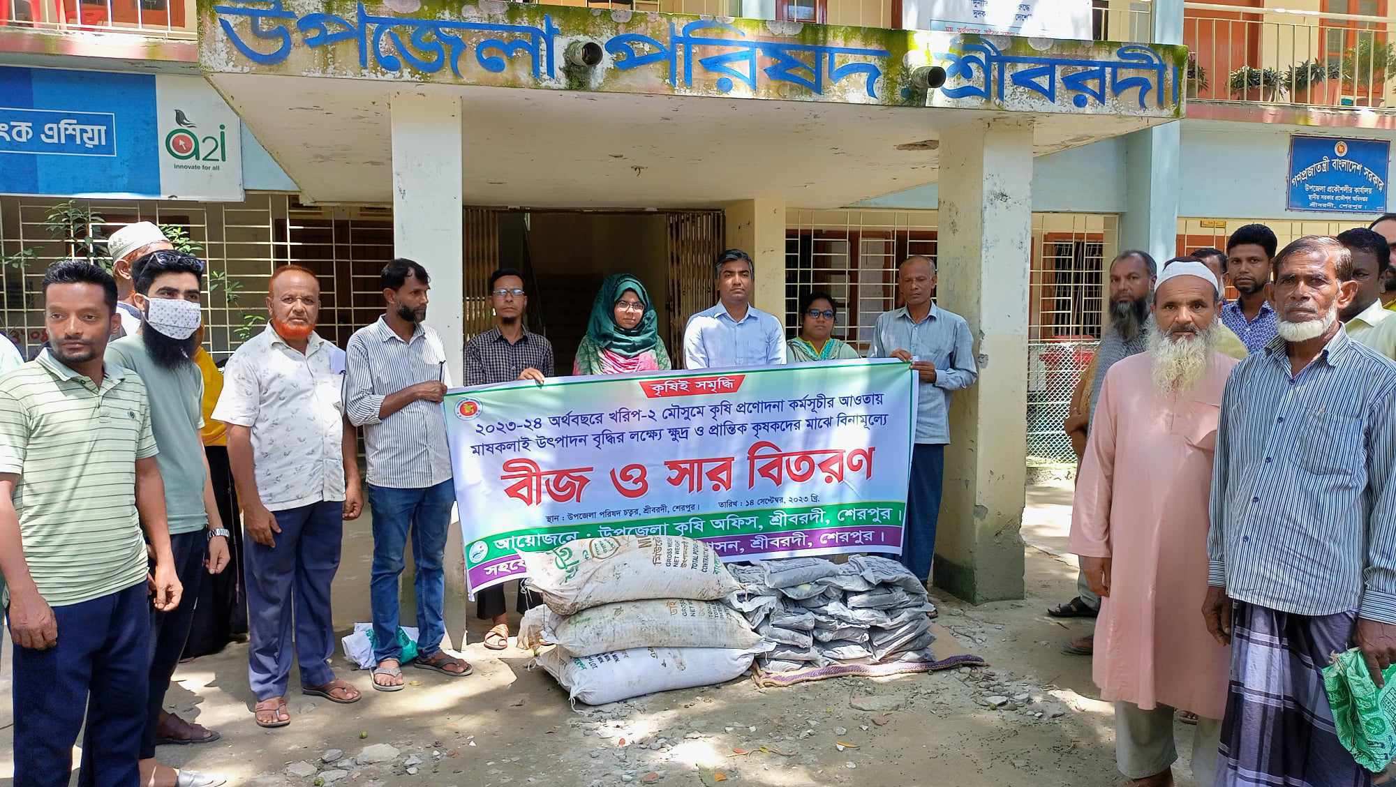 আজ ১৪সেস্টেম্বর রোজ বৃহস্পতিবার সকালে শ্রীবরদী উপজেলায় ২০২৩-২৪ অর্থ বছরে খরিপ-২ মৌসুমে কৃষি প্রণোদনা কর্মসূচীর আওতায় শেরপুরের শ্রীবরদীতে ক্ষুদ্র ও প্রান্তিক কৃষকদের মাঝে বিনামূল্যে মাষকলাই বীজ ও সার বিতরণ করা হয়েছে।