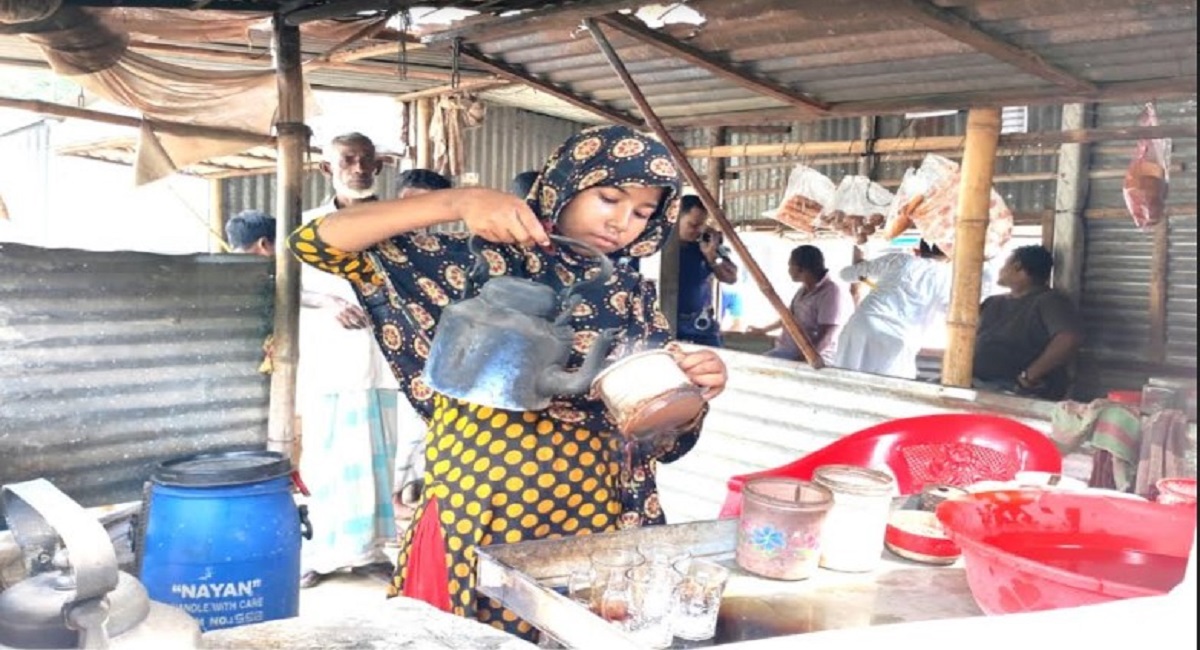 যে বয়সে বইখাতা নিয়ে স্কুলে যাওয়ার কথা,সেই বয়সে বইখাতা ফেলে গত ১ বছর হল চা বিক্রি করে সংসার চালাচ্ছে ৪র্থ শ্রেণি পড়ুয়া শিশু সুমাইয়া(১২)।শিশু সুমাইয়া সিরাজগঞ্জের শাহজাদপুর উপজেলার গাঁড়াদহ ইউনিয়নের গাঁড়াদহ বুধবার হাটখোলা এলাকার যক্ষা রোগ আক্রন্ত মো: সায়েম আলী ফকির(৬৫) ৪র্থ মেয়ে।
