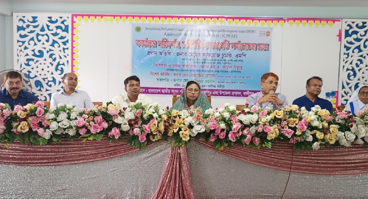 বাংলাদেশ জাতীয় সংসদ সচিবালয় কর্তৃক বাস্তবায়নাধীন “জনসংখ্যা ও উন্নয়ন ইস্যু একীভূতকরণে সংসদের সক্ষমতা শক্তিশালীকরণ” (এসপিসিপিডি) প্রকল্পের আওতায় গঠিত সভায় প্রধান অতিথি হিসেবে উপস্থিত ছিলেন স্থানীয় সংসদ সদস্য এবং মহিলা ও শিশু বিষয়ক মন্ত্রণালয় সম্পর্কি সংসদীয় স্থায়ী কমিটি সভাপতি মেহের আফরোজ চুমকি।