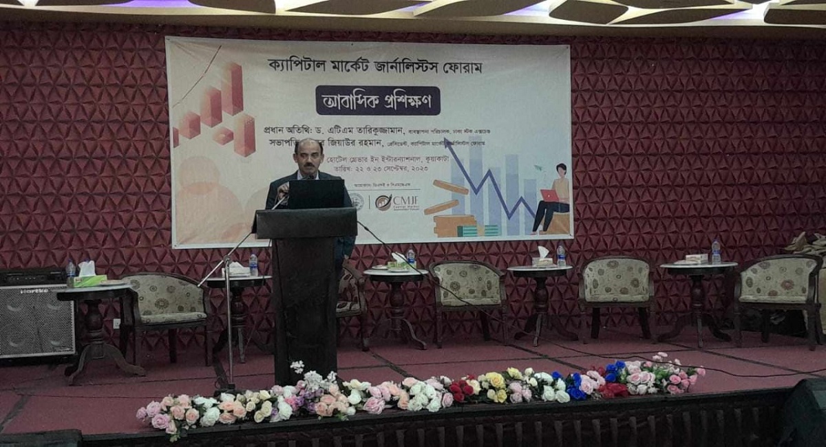 শনিবার ক্যাপিটাল মার্কেট জার্নালিস্টস ফোরাম (সিএমজেএফ) এবং ঢাকা স্টক এক্সচেঞ্জের (ডিএসই) যৌথ উদ্যোগে আয়োজিত দুইদিনব্যাপী আবাসিক প্রশিক্ষণের সমাপনী দিনে প্রধান অতিথি বক্তব্যে ডিএসইর নব নিযুক্ত ব্যবস্থাপনা পরিচালক ড. এটিএম তারিকুজ্জামান এসব কথা বলেন।