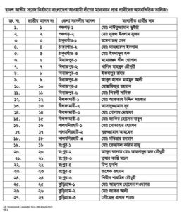পঞ্চগড়-২ নুরুল ইসলাম সুজন, ঠাকুরগাঁও-১ রমেশ চন্দ্র সেন, দিনাজপুর-২ খালিদ মাহমুদ চৌধুরী, রংপুর-৬ শিরীন শারমিন চৌধুরী, সিরাজগঞ্জ-৩ আব্দুল আজিজ, সিরাজগঞ্জ-৪ শফিকুল ইসলাম, সিরাজগঞ্জ-৫ আব্দুল মমিন মন্ডল মনোনয়ন পেয়েছেন।