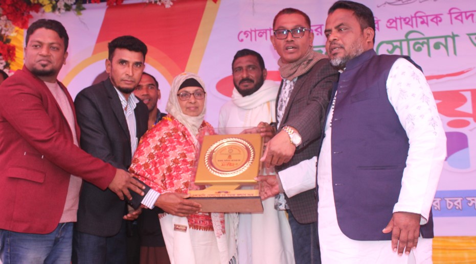 বিদায়ী শিক্ষক সেলিনা আক্তারকে ফুলেল শুভেচ্ছা জানানো হয় এবং সম্মাননা স্মারক তুলে দেন চেঙ্গাকান্দি গোলাপেরচর সমাজ কল্যাণ সংঘের সকল সদস্য এবং স্কুলের সাবেক শিক্ষার্থীবৃন্দ এবং অন্যান্য অতিথিবৃন্দ।