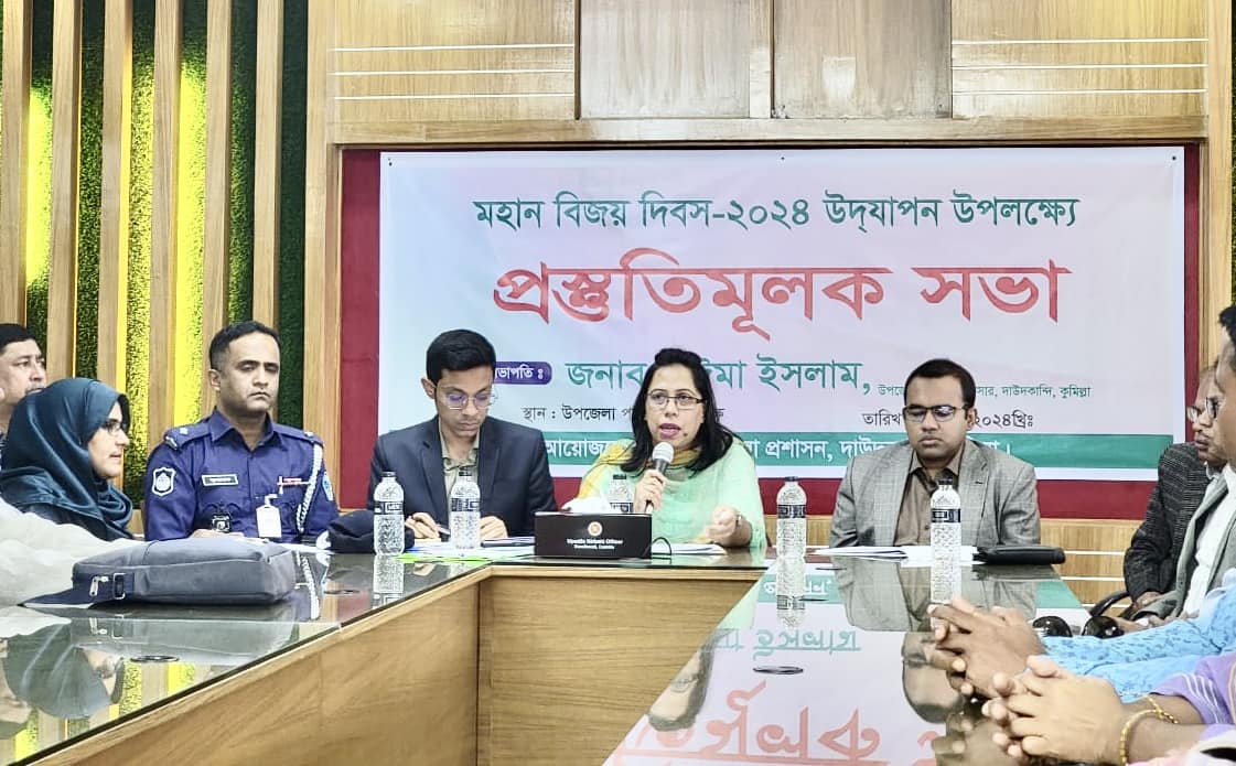 ১৬ ডিসেম্বর-২০২৪ মহান বিজয় দিবস পালন উপলক্ষে প্রস্তুতিমূলক সভায় বক্তব্য রাখেন দাউদকান্দি পৌর বিএনপির আহবায়ক নূর মোহাম্মদ সেলিম সরকার ও পৌর বিএনপির সিনিয়র যুগ্ম আহবায়ক শওগাত চৌধুরী পিটার প্রমূখ ।