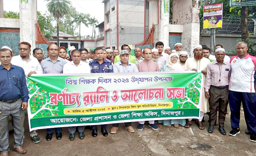 “সহযোগিতামূলক পেশা হিসেবে শিক্ষাদানের পুনর্গঠন” এই প্রতিপাদ্যকে সামনে রেখে রোববার ৫ অক্টোবর জেলা প্রশাসন ও জেলা শিক্ষা অফিস এর আয়োজনে বিশ্ব শিক্ষক দিবস উদযাপন উপলক্ষে দিনাজপুর জিলা স্কুল প্রাঙ্গন হতে বর্ণাঢ্য র্যালী ও জিলা স্কুল অডিটোরিয়ামে আলোচনা সভা অনুষ্ঠিত হয়েছে।