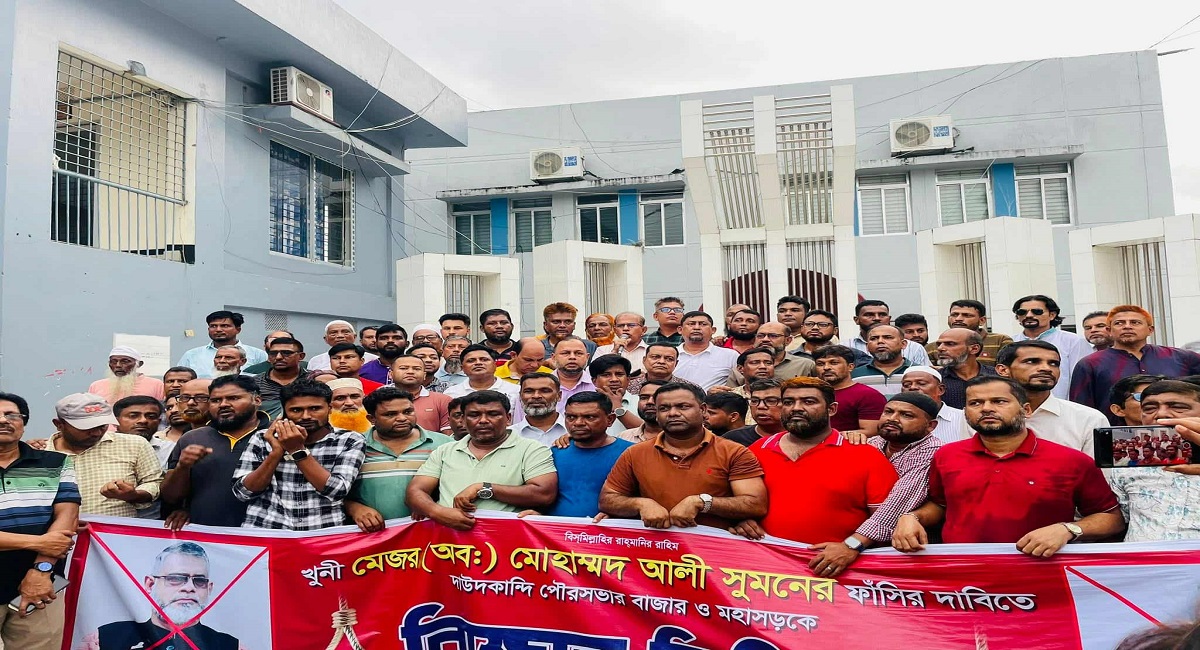কুমিল্লার দাউদকান্দি উপজেলা পরিষদের সাবেক চেয়ারম্যান মেজর অবঃ মোহাম্মদ আলী সুমনের ফাঁসির দাবীতে বিক্ষোভ মিছিল করেছে বিএনপি।