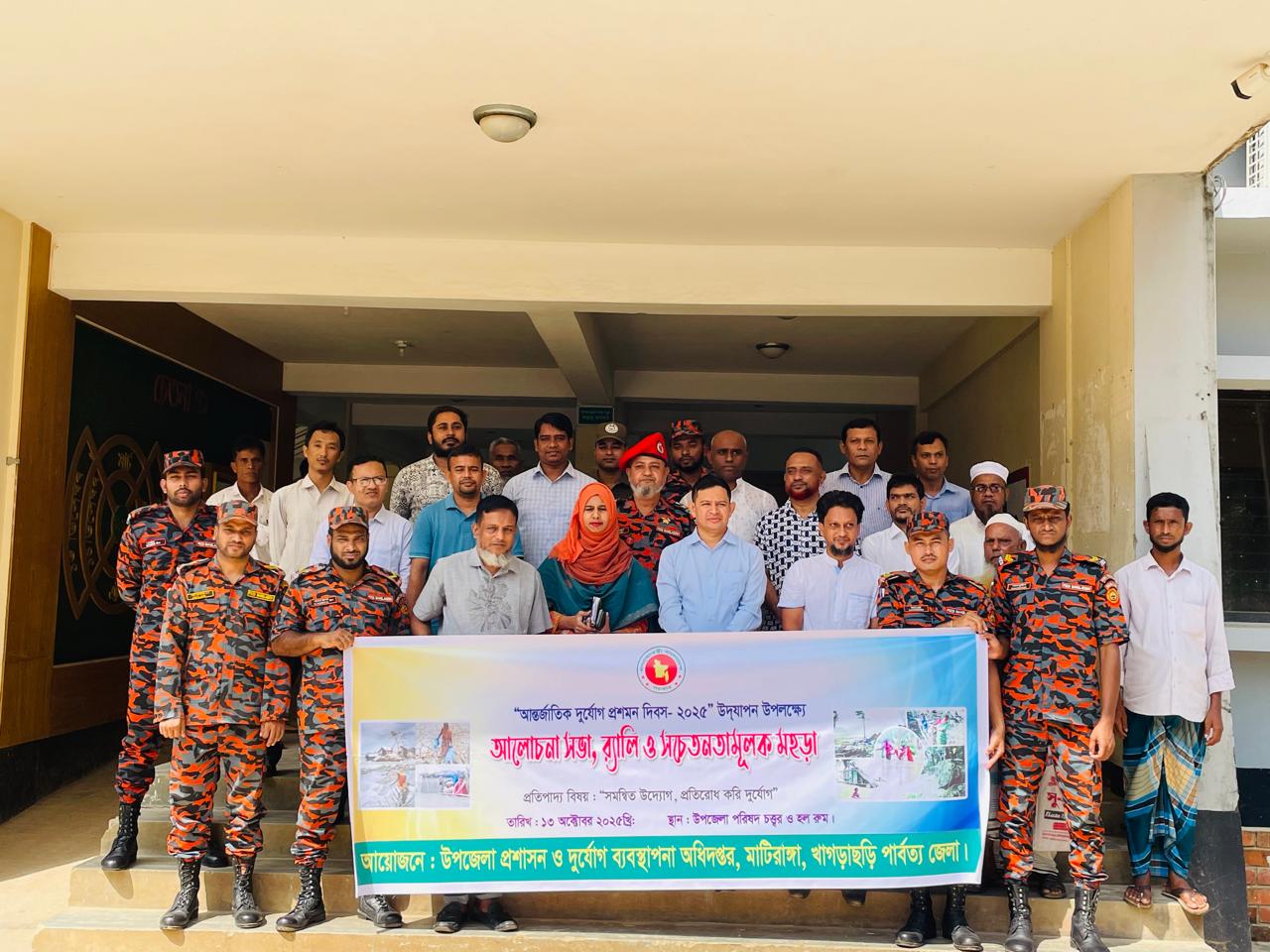 ‘সমন্বিত উদ্যোগ, প্রতিরোধ করি দুর্যোগ’ এই প্রতিপাদ্যে বিষয়কে সামনে রেখে খাগড়াছড়ি জেলার মাটিরাঙ্গায় আন্তর্জাতিক দুর্যোগ প্রশমন দিবস উপলক্ষ্যে আলোচনা সভা র্যালি ও সচেতনতামূলক মহড়া অনুষ্ঠিত হয়েছে।