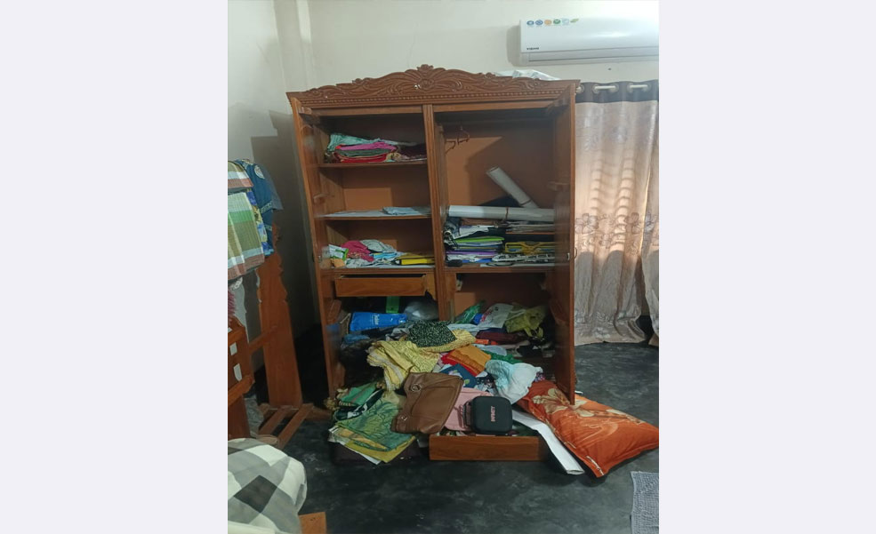 তিনি জানান, তারা ঘরের তিনটি কক্ষের দরজা, জানালা, আলমারি, শোকেসসহ বিভিন্ন আসবাবপত্র তছনছ করে ঘরে থাকা বিভিন্ন ইলেকট্রনিক্স মালামাল এবং আলমিরার ড্রয়ারে রাখা ২৪/২৫ ভরি ওজনের স্বর্ণালংকার এবং মূল্যবান মালামাল লুট করে নিয়ে যায়।