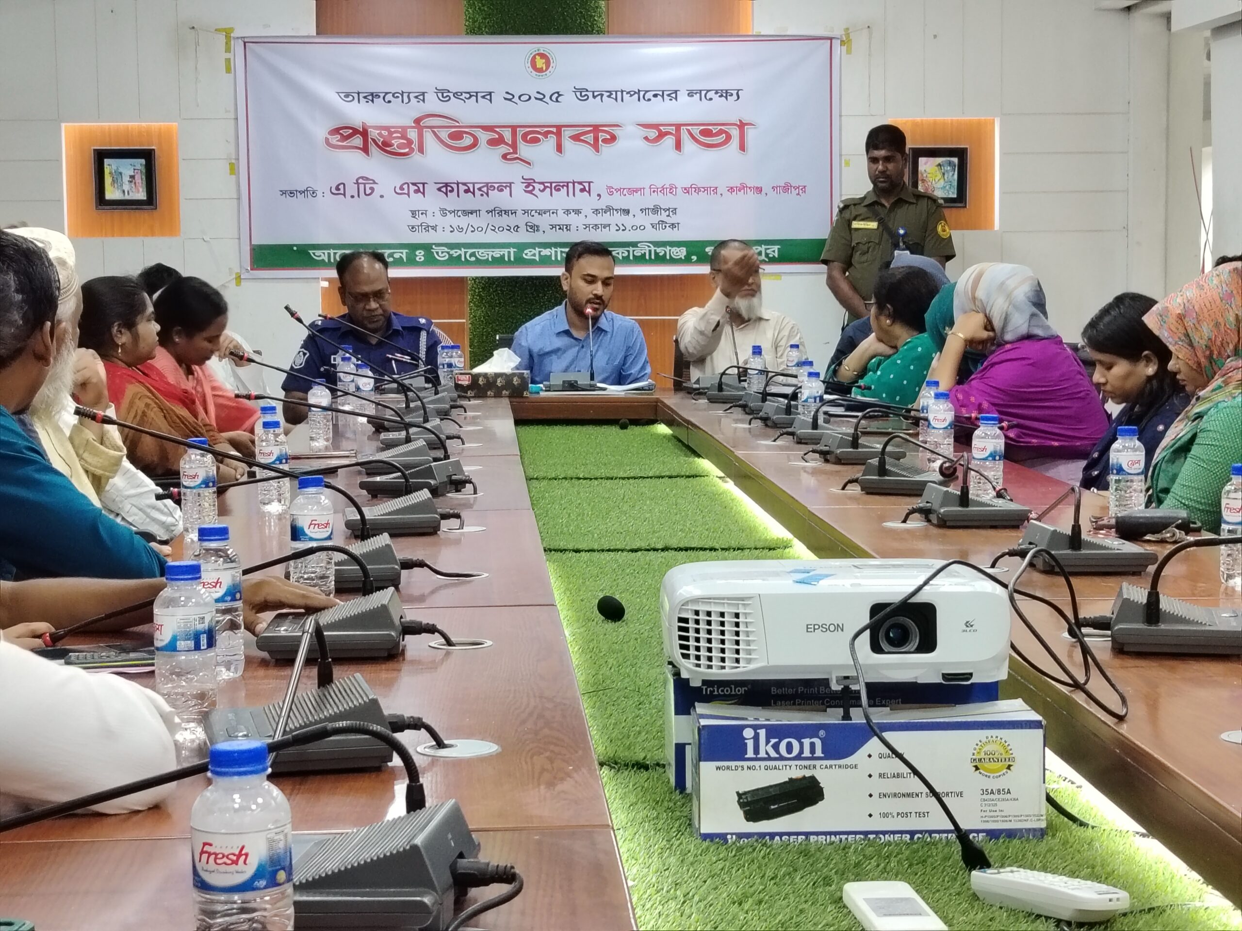 গাজীপুরের কালীগঞ্জে ‘তারুণ্যের উৎসব’ উদযাপন উপলক্ষে এক প্রস্তুতিমূলক সভা অনুষ্ঠিত হয়েছে। বৃহস্পতিবার (১৬ অক্টোবর) সকালে উপজেলা পরিষদ সম্মেলন কক্ষে এ সভার আয়োজন করে উপজেলা প্রশাসন।