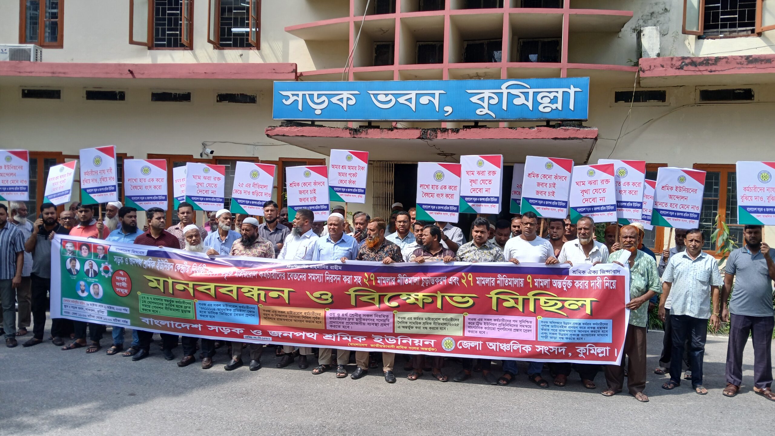 কুমিল্লায় সড়ক ও জনপদ (সওজ) বিভাগের কর্মচারীদের ৭ দফা দাবিতে বিক্ষোভ ও মানববন্ধন কর্মসূচি পালন করেছে।