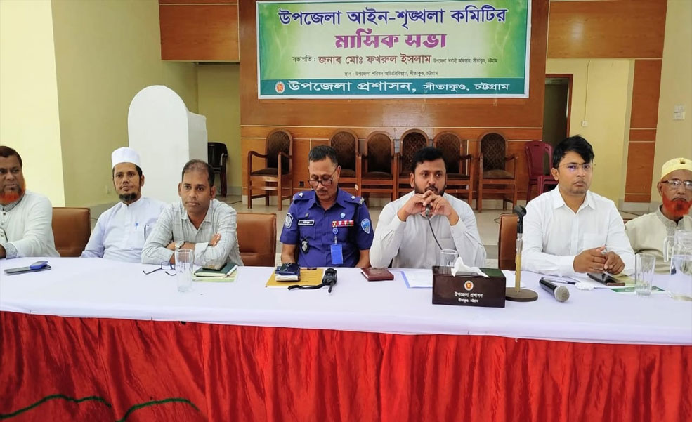 চট্টগ্রামের সীতাকুণ্ড উপজেলা প্রশাসনের আয়োজনে আইন-শৃঙ্খলা কমিটির মাসিক সভা অনুষ্ঠিত হয়েছে। বৃহস্পতিবার (২৩ অক্টোবর) সকাল ১১ টায় উপজেলা পরিষদ অডিটোরিয়ামে উক্ত সভা অনুষ্ঠিত হয়।