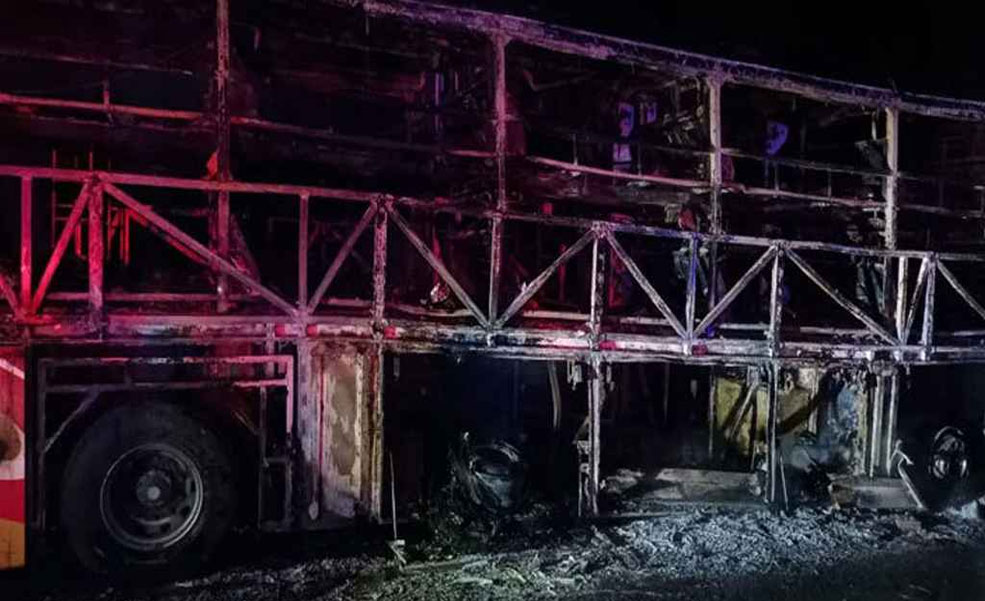 পুলিশের তথ্যমতে, বেসরকারি মালিকানাধীন বাসটি ৪৪ নম্বর জাতীয় মহাসড়ক ধরে দ্রুতগতিতে যাচ্ছিল। সংঘর্ষের পর মোটরসাইকেলটি বাসের সামনের অংশে আটকে যায়। এরপর অল্প কিছু দূর যাওয়ার মধ্যেই বাসে আগুন ধরে যায়। দুর্ঘটনার সময় বাসের বেশির ভাগ যাত্রী ঘুমিয়ে ছিলেন। আগুন লাগার পর কিছু লোক জানালা ভেঙে বেরিয়ে প্রাণ বাঁচান, তবে অনেকেই বাসের ভেতর থেকে বের হতে পারেননি।