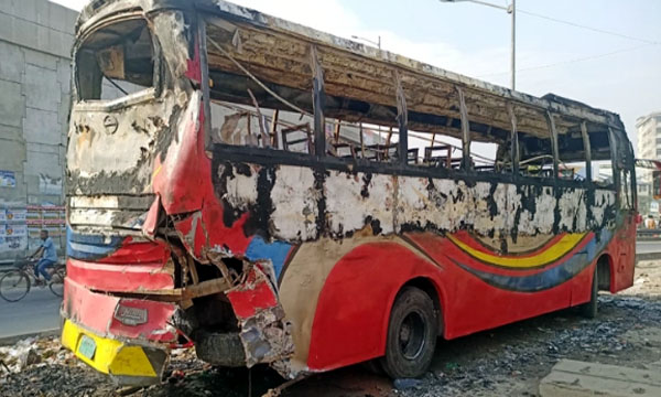 নারায়ণগঞ্জে দুর্বৃত্তের আগুনে পুড়লো বাস