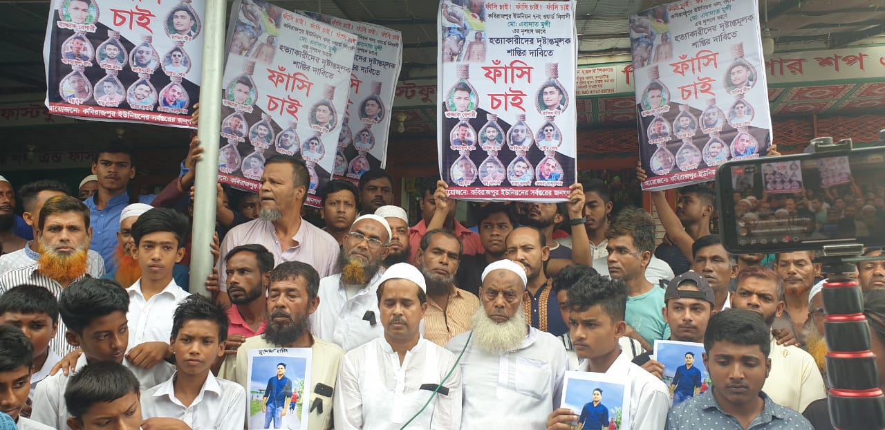 রাজৈরে গ্রেফতার ও ফাঁসির দাবিতে মানববন্ধন-বিক্ষোভ