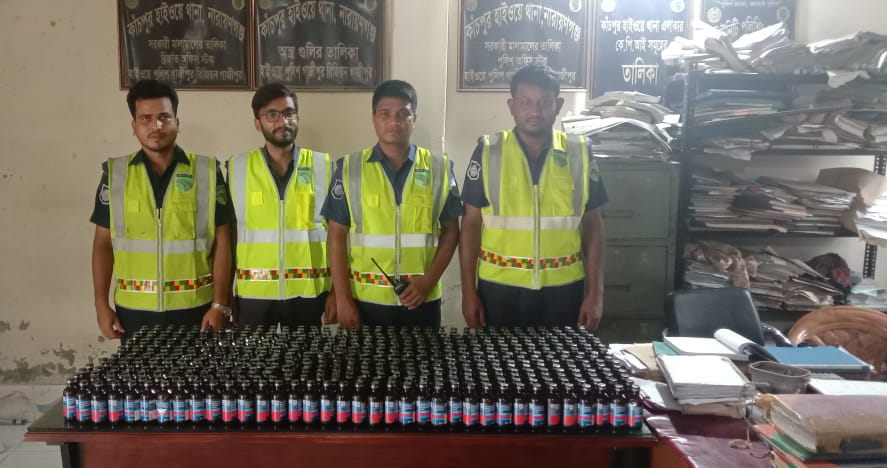 হাইওয়ে পুলিশের অভিযানে ৫২৩ বোতল ফেন্সিডিল উদ্ধার ও ট্রাক জব্দ