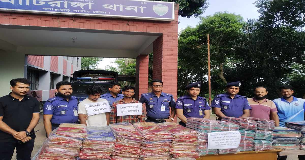 মাটিরাঙ্গায় পুলিশের অভিযানে ১২ লাখ ৯৬ হাজার টাকার ভারতীয় শাড়ি উদ্ধার; আটক-২