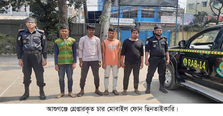 আশুগঞ্জে চার মোবাইল ফোন ছিনতাইকারী গ্রেপ্তার