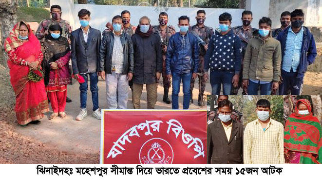 সীমান্ত অতিক্রম করে বাংলাদেশ থেকে ভারতে প্রবেশের সময় ১৫ জন নারী, পুরুষ ও শিশুকে আটক করেছে মহেশপুর ৫৮ বিজিবি। বৃহস্পতিবার