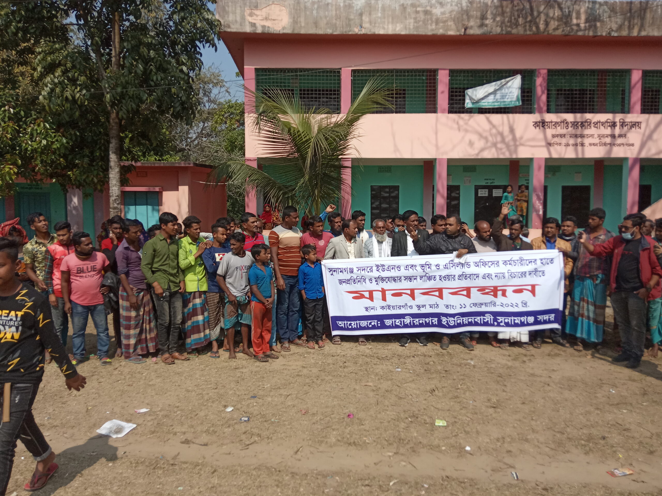 সুনামগঞ্জে ইউএনও কর্তৃক মুক্তিযোদ্ধার সন্তান লাঞ্ছিত হওয়ার প্রতিবাদে মানববন্ধন