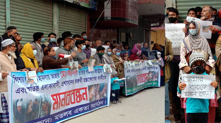 সিদ্ধিরগঞ্জে কিশোর গ্যাং ও মাদকের হোতা করিম বাহিনীর হামলার প্রতিবাদে মানববন্ধন