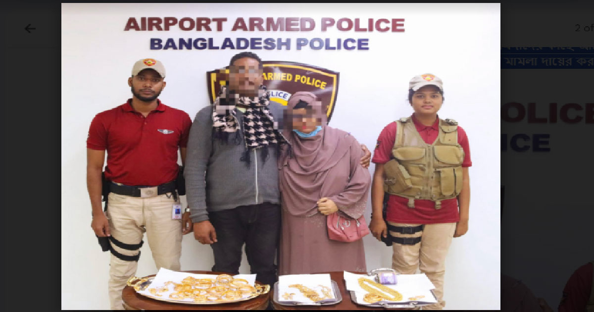 শাহজালালে দেড় কেজি সোনাসহ স্বামী স্ত্রী’কে আটক করেছে বিমানবন্দর এপিবিএন