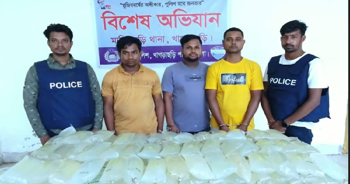 মানিকছড়িতে তিন মাদক ব্যবসায়ী গ্রেপ্তার ২টি প্রাইভেটকার জব্দ