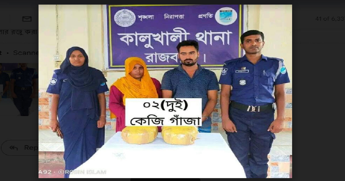 কালুখালী থানা পুলিশের অভিযানে২ কেজি গাঁজা সহ মোঃ রাহুল বিশ্বাস (৩২) ও সুফিয়া খানম( ২৮) নামে মাদক কারবারিকে গ্রেপ্তার করা