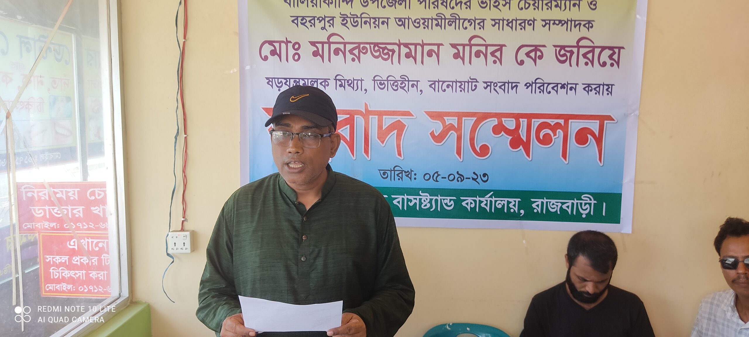 রাজবাড়ী বালিয়াকান্দিতে যড়যন্ত্রমূলক মিথ্যা সংবাদ পরিবেশন করায় সংবাদ সম্মেলন করেছে উপজেলা ভাইস চেয়ারম্যান ও বহরপুর ইউনিয়ন আ.লীগ সাধারণ সম্পাদক মনিরুজ্জামান