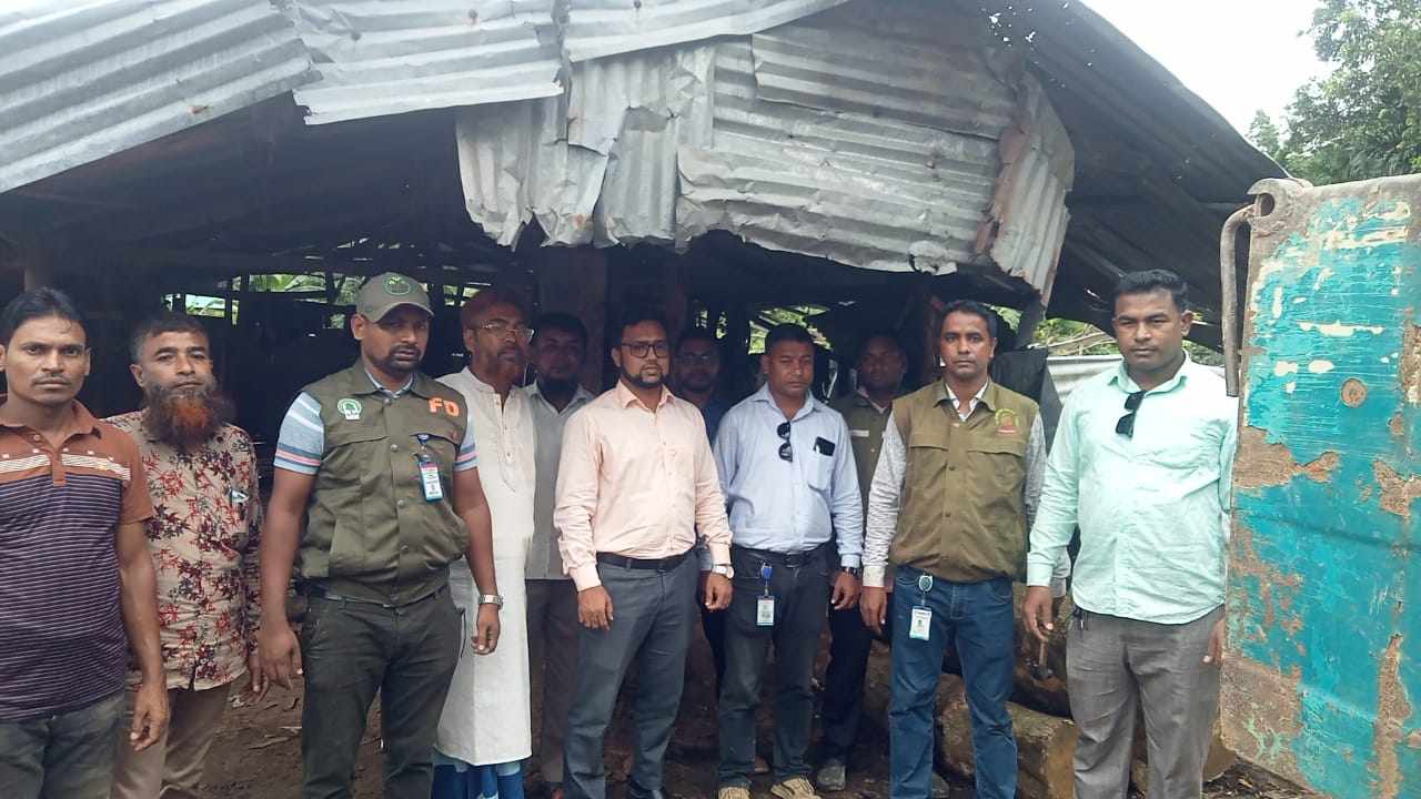 উখিয়া থাইংখালী থেকে দুটি অবৈধ করাতকল বিপুল পরিমাণ কাঠ জব্দ করেছে বন বিভাগ
