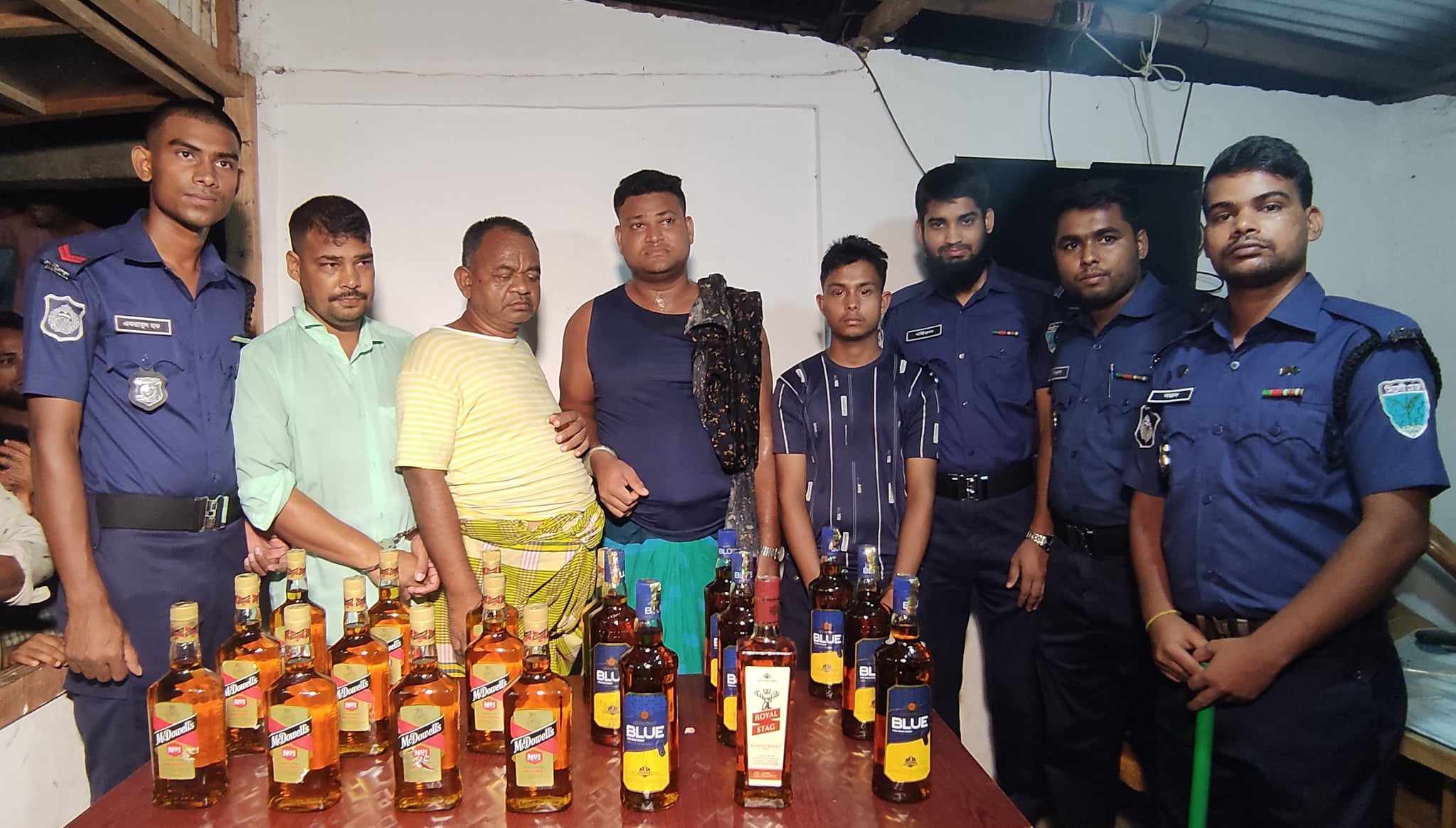 গোয়াইনঘাটে পুলিশের অভিযানে জাফলং থেকে ভারতীয় মদসহ আটক ৪