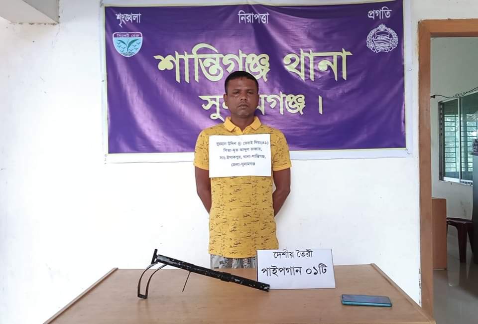 সুনামগঞ্জে অস্ত্র দিয়ে অন্যকে ফাঁসাতে গিয়ে নিজেই ফেঁসে গেলেন
