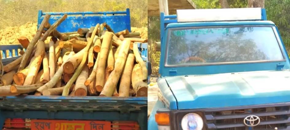 অবৈধভাবে গাছ কেটে পাচারঃ বোঝাইকৃত কাঠসহ জীপ গাড়ি জব্দ