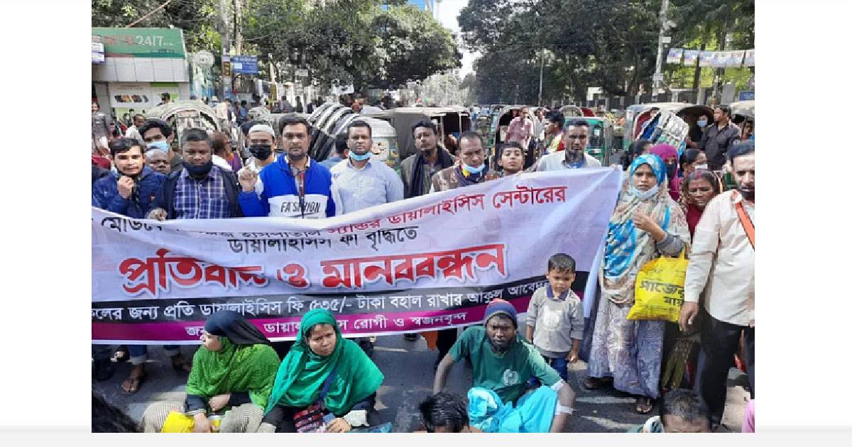 ডায়ালাইসিস ফি কমানো এবং ভর্তুকির সেশন কমিয়ে আনার দাবিতে কিডনি রোগী ও তাঁদের স্বজনেরা আজ মঙ্গলবার সড়ক অবরোধ করে বিক্ষোভ